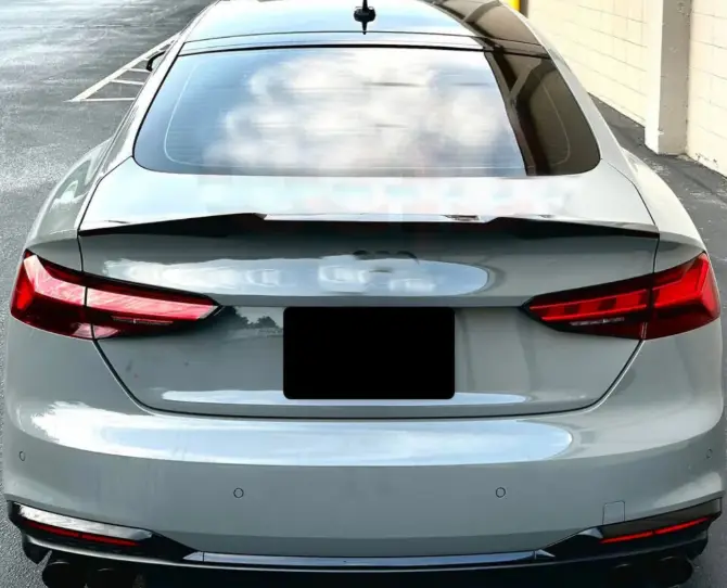Carbon Fiber M Style Trunk Spoiler (Audi A5 | S5 | RS5 Sportback – B9) Enhance the rear-end styling of your Audi with our M Style Carbon Fiber Trunk Spoiler , designed specifically for the B9 Sportback platform . This spoiler adds a subtle yet aggressive motorsport-inspired profile, increasing visual depth and sportiness while maintaining a clean OEM+ appearance that flows seamlessly with the factory body lines. Constructed from high-quality carbon fiber , this trunk spoiler offers lightweight durability and a premium finish. Finished with a UV-resistant clear coat , it is protected against fading, yellowing, and sun damage, ensuring long-lasting visual appeal. Precision-molded design allows for a clean, factory-style fit when properly installed. Product Features M style trunk spoiler design for refined OEM+ styling Premium carbon fiber construction for lightweight durability