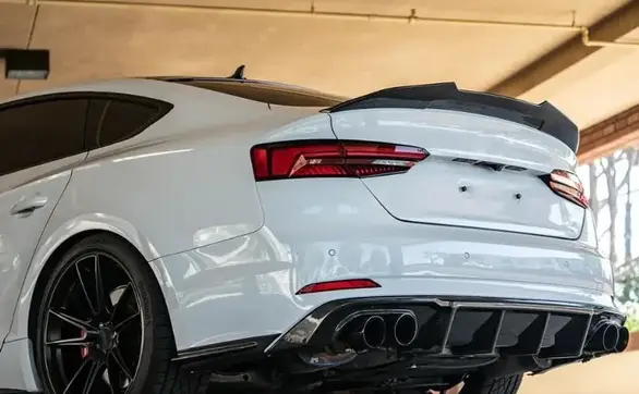 Carbon Fiber PSM Style Trunk Spoiler (Audi A5 | S5 | RS5 Sportback – B9) Enhance the rear styling of your Audi Sportback with our PSM Style Carbon Fiber Trunk Spoiler , designed to add a subtle yet aggressive motorsport-inspired accent while maintaining a clean OEM+ appearance. The PSM-style design flows seamlessly with the factory Sportback trunk lines, adding visual depth and a sportier rear profile without overpowering the overall design. Constructed from high-quality carbon fiber , this trunk spoiler offers lightweight durability and a premium finish. Finished with a UV-resistant clear coat , it is protected against fading, yellowing, and sun damage to ensure long-lasting visual appeal. Precision-molded fitment allows for seamless integration with the factory trunk lid when properly installed. Product Features PSM style trunk spoiler design for refined OEM+ styling Premium carbon