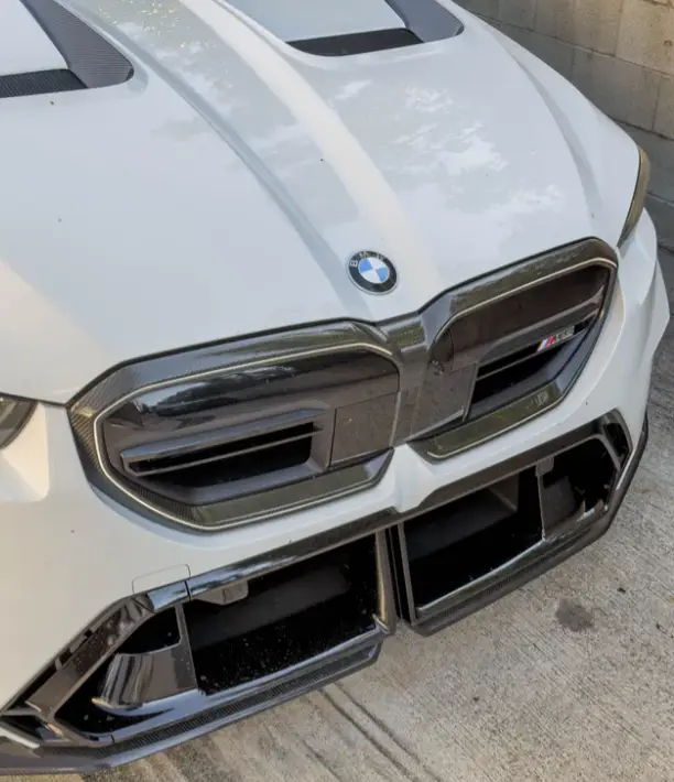 G60 / G90 / G99 Dry Carbon Fiber Grille Surround Trim Cover (BMW G60 5-Series | G60 i5 | G90 M5 | G99 M5 Touring) Enhance the front-end styling of your BMW with our Dry Carbon Fiber Grille Surround Trim Cover , designed to add a sharper and more aggressive OEM+ appearance without replacing the factory grille assembly. This trim overlay highlights the kidney grille perimeter with a premium carbon fiber finish, giving the front fascia a more refined and performance-inspired look. Constructed from high-quality dry carbon fiber , this trim cover offers lightweight durability and a thinner, more precise weave compared to traditional wet carbon. Finished with a UV-resistant gloss clear coat , it is protected against fading, yellowing, and sun damage to maintain long-term visual quality. This is a stick-on overlay piece that installs directly over the factory grille surround using